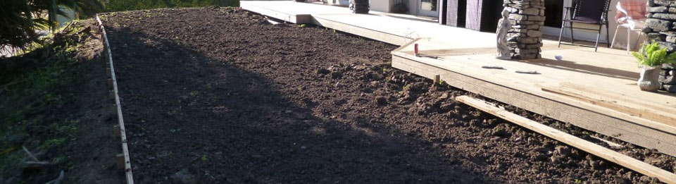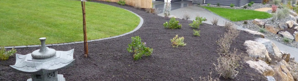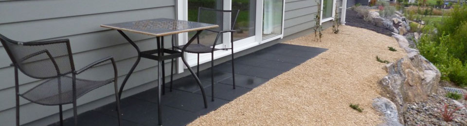 Install rock gardens, ponds, decks, drainage systems, irrigation systems, retaining walls, fences, planters, and/or playground equipment.